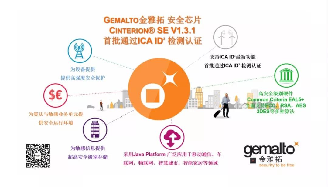 金雅拓一直致力于為物聯(lián)網(wǎng)安全保駕護航,并作為ICA(IoT 合作伙伴計劃)聯(lián)盟1理事成員,出席本次盛會,與科技大佬們共享經(jīng)驗,共促物聯(lián)網(wǎng)的蓬勃發(fā)展。本次大會發(fā)布了首批通過ICA ID2檢測認證2的安全芯片產(chǎn)品,金雅拓Cinterion® SE 安全芯片成為首批通過檢測認證的高安全級別產(chǎn)品。