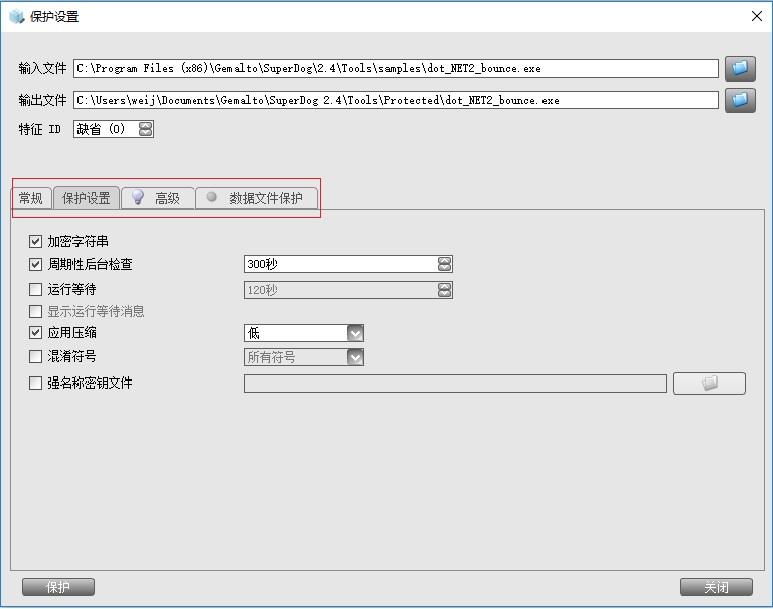 其中“周期性后臺檢查”設置加密后的程序后臺默認檢查加密狗的頻率,即拔掉后程序反應的時間。