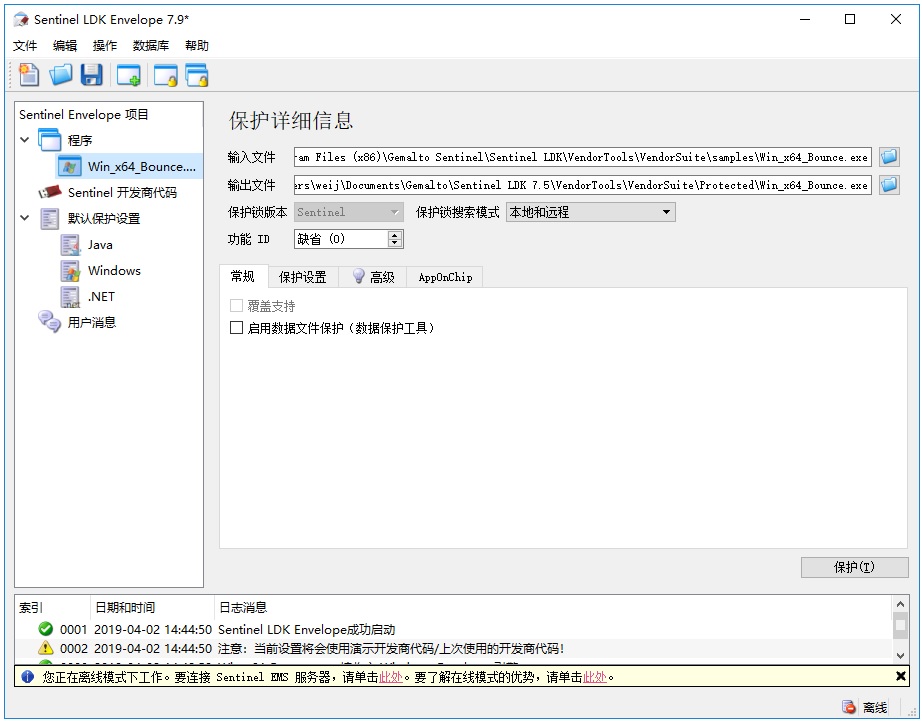 功能ID可以理解為加密鎖中的許可證,許可證中定義了軟件運行的到期時間、次數等特性,如果你加密時選擇缺省0以外的功能ID,那在使用加密鎖子鎖前,要先定義和激活對應的功能ID(如何定義功能ID,請參考子鎖授權的介紹)。功能ID的設置范圍是0-65471,任何一把加密鎖默認的功能ID=0都是開放的,如果你加密時選擇功能ID為0,那么加密后的軟件插上對應序列號的加密鎖直接就能打開。basic型加密鎖因為不帶存儲功能,所以功能ID只能選0。