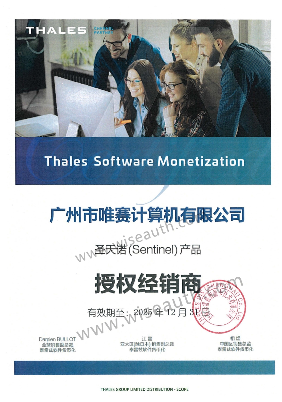 廣州市唯賽計算機有限公司成立于2003年,公司致力于為軟件開發(fā)商提供軟件保護解決方案和為企業(yè)提供企業(yè)管理信息安全的解決方案,是法國泰雷茲(THALES)和賽孚耐(SAFENET)公司中國區(qū)核心的代理商。公司主要經(jīng)營的產(chǎn)品有軟件加密狗、圣天諾加密鎖等各類 軟件貨幣化解決方案;u-key身份認證令牌;物聯(lián)網(wǎng)軟件 嵌入式解決方案以及泰雷茲公司的全系列網(wǎng)絡(luò)安全產(chǎn)品。